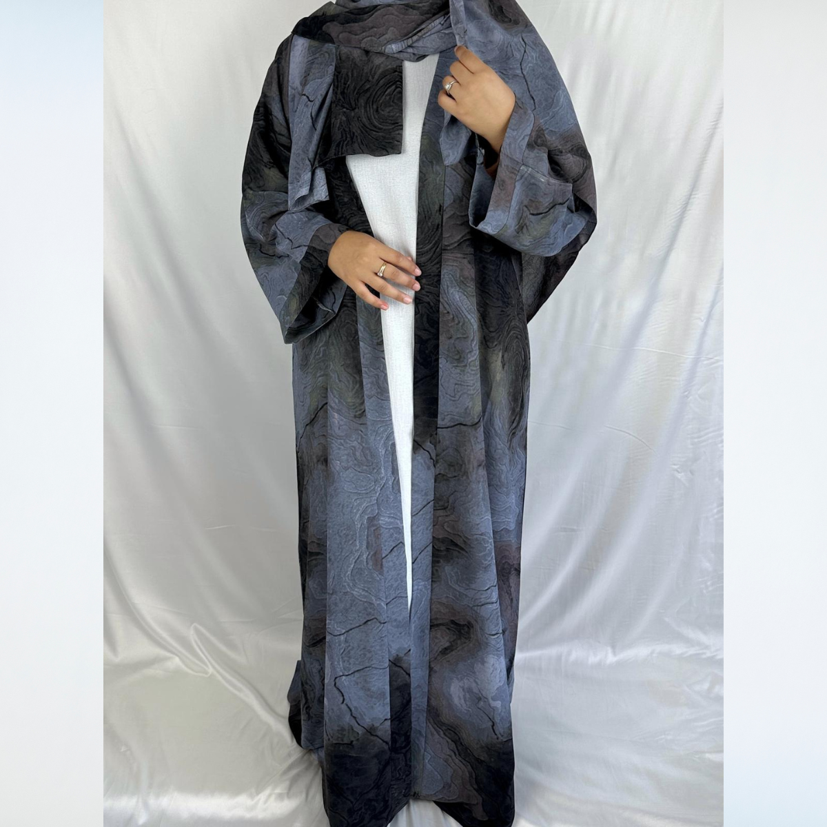Rawdah Marble Print Abaya with Inner Dress - 4pcs